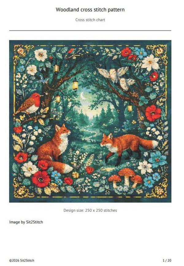 Woodland Cross Stitch pattern, Red Fox, Robin, owls. Instant PDF Download. 62,500 Stitches.