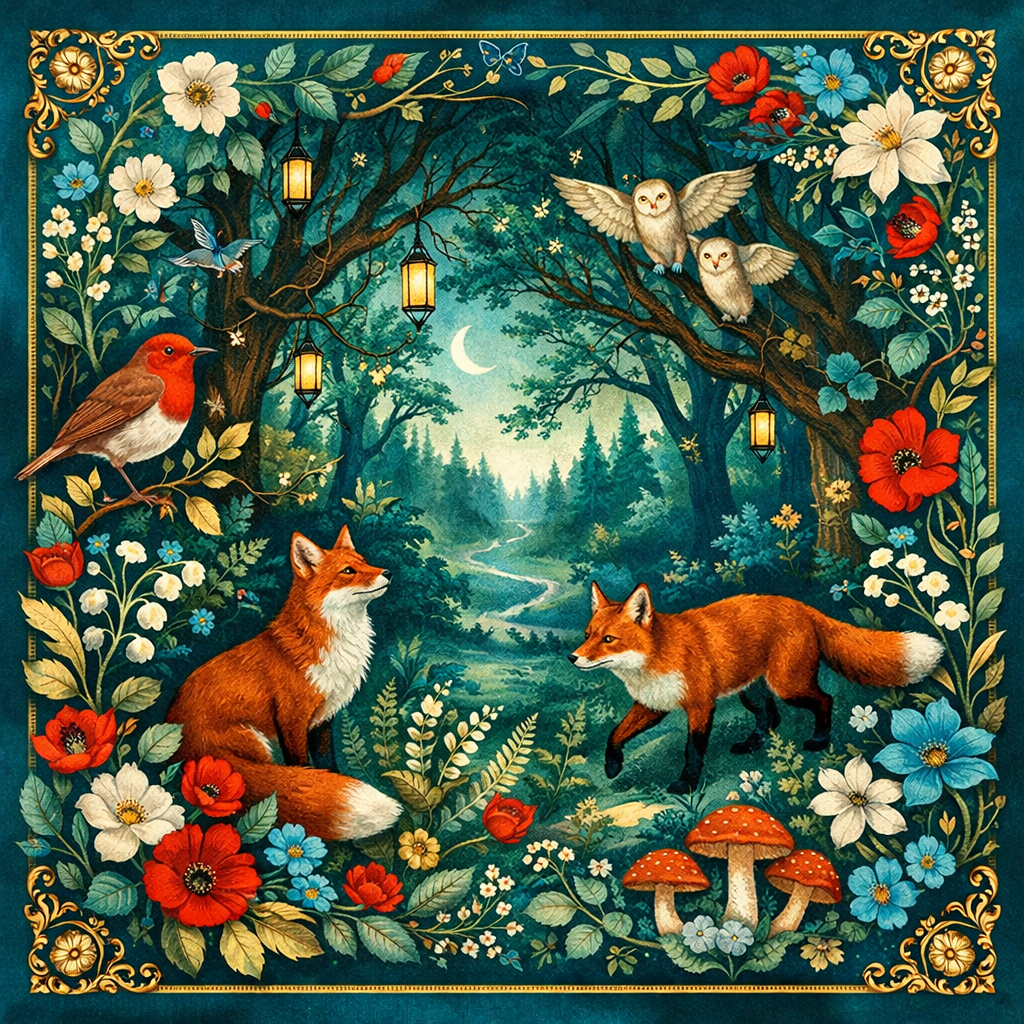 Woodland Cross Stitch pattern, Red Fox, Robin, owls.